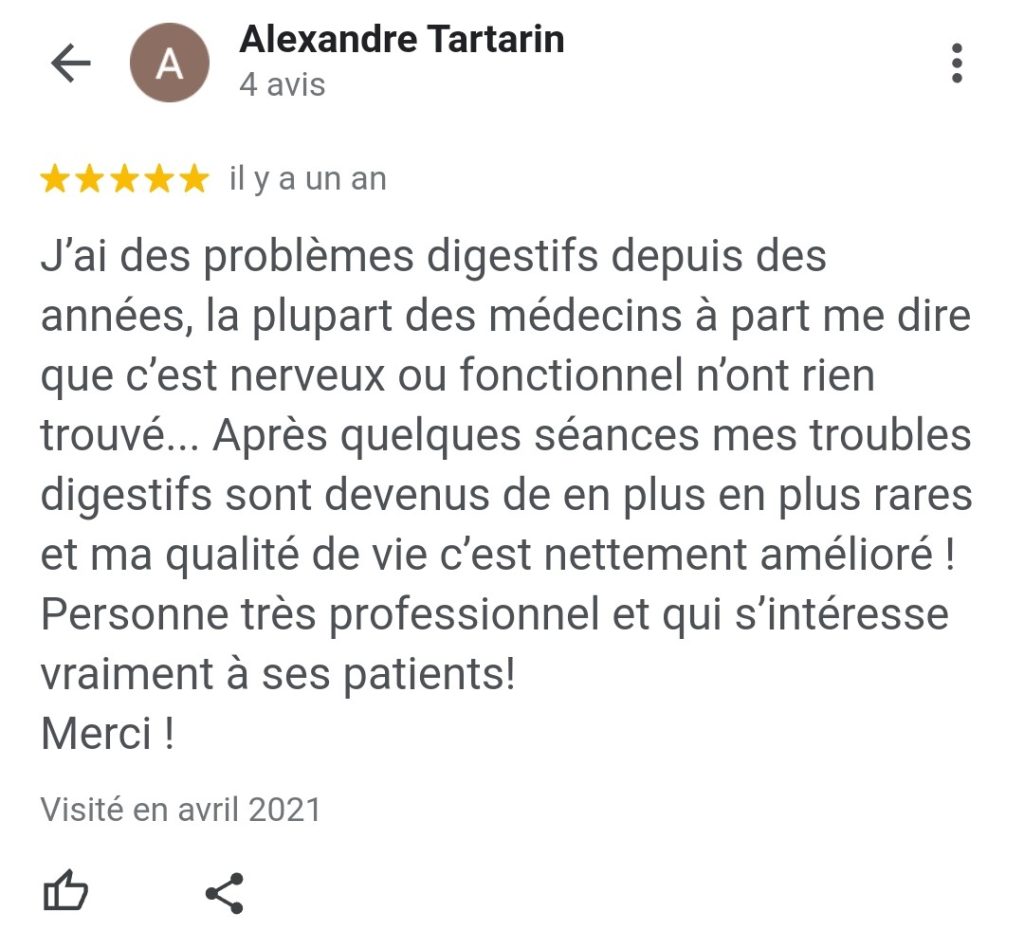 De plus, ce n’est pas parce qu’il y a rien aux examens que le tube digestif est normal… Les examens permettent seulement une vision partielle du tube digestif.